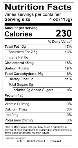 US Farm Raised Catfish contains up to 15% solution of Water, Sodium Tripolyphosphate, and Sodium Hexametaphosphate. Battered with: Water, Wheat Flour, Yellow Corn Flour, Salt, Modified Food Starch, 2% or less of Spices, Leavening (Sodium Acid Pyrophosphate, Sodium Bicarbonate, Monocalcium Phosphate), Natural Flavor, Turmeric Extract, Annatto Extract. Breaded with: Enriched Yellow Corn Meal (Yellow Corn Meal, Niacin, Reduced Iron, Thiamine Mononitrate, Riboflavin, Folic Acid), Yellow Corn Flour, Wheat Flour, Salt, 2% or less of Spices, Leavening (Sodium Acid Pyrophosphate, Sodium Bicarbonate, Monocalcium Phosphate), Soybean Oil, Paprika, Citric Acid, Dried Onion. Par Fried in Soybean Oil.