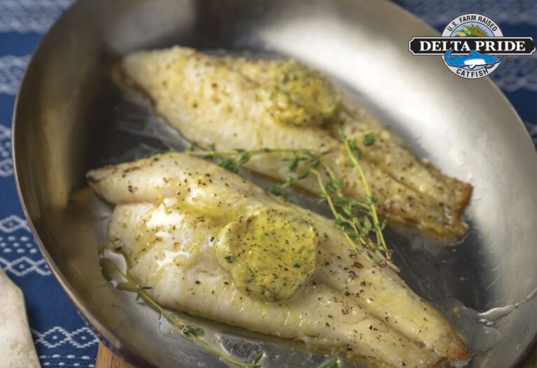 Indulge in the rich flavors of our Baked Catfish with Roasted Garlic Compound Butter. Made with tender U.S. Farm-Raised Catfish