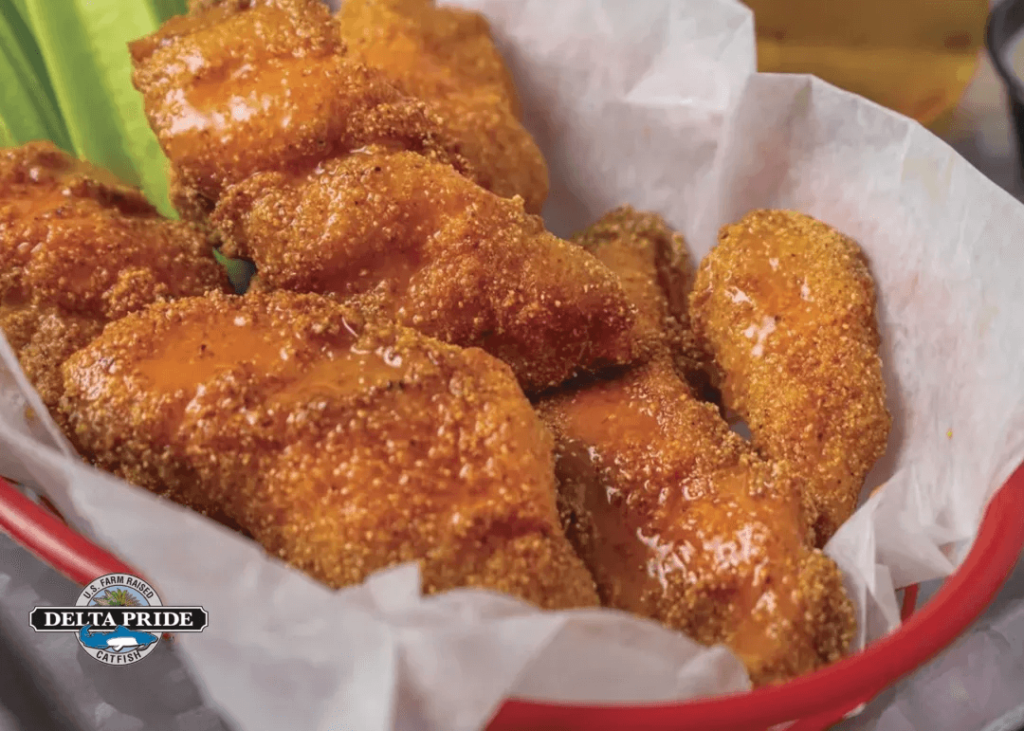 Step up your appetizer game with a Southern twist on a classic favorite – Delta Pride Catfish Hot Wings! These delightful morsels are not your typical chicken wings; they’re made with Delta Pride U.S. Farm-Raised Catfish fillets, ensuring top quality and great taste in every bite.